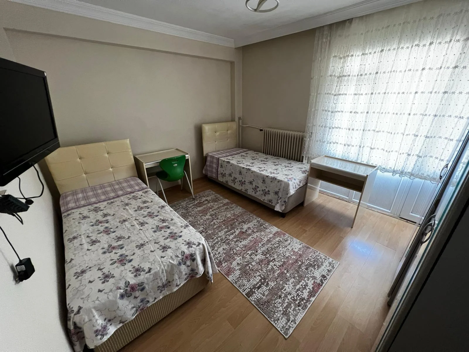 Her öğrenciye özel çalışma masası, gardırop ve TV